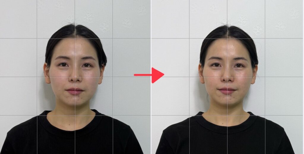 撮影前後を比較すると、「フェイスラインの引き締まり」がはっきりと確認できます。